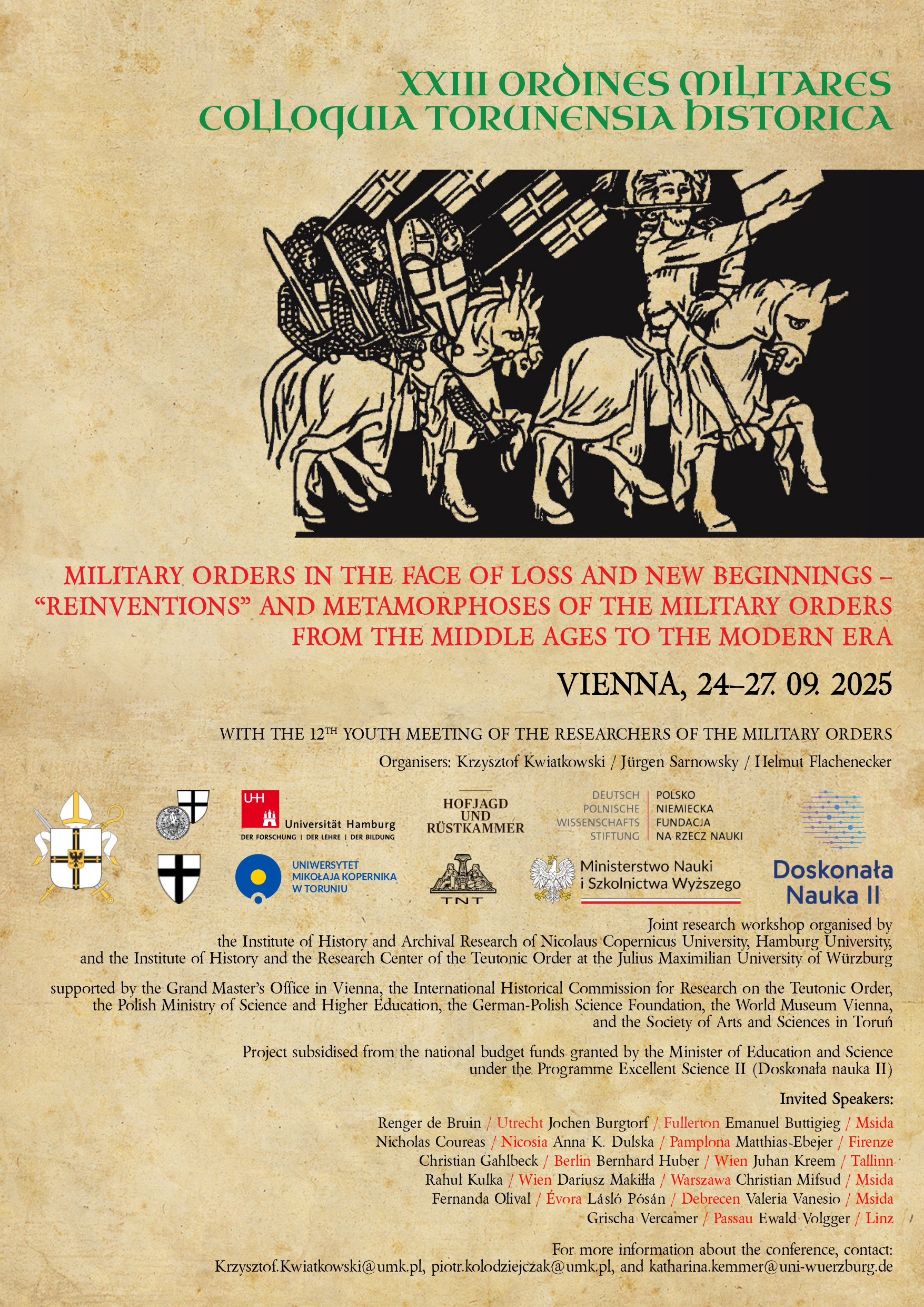 W dniach 20–23 września 2017 r. odbędzie się w Toruniu XIX Konferencja z cyklu „Ordines Militares. Colloquia Torunensia Historica”